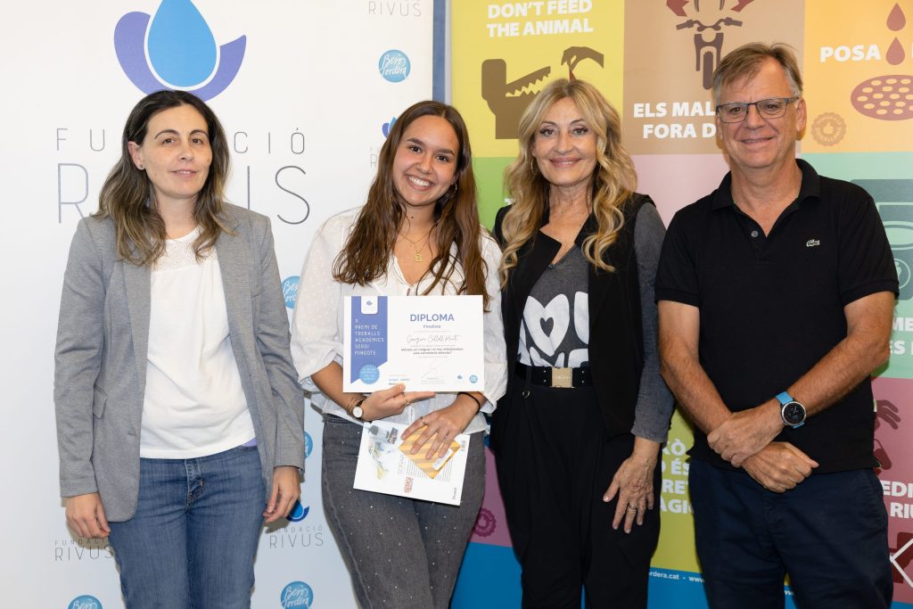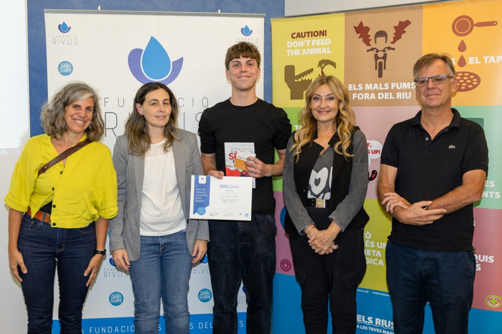 Els estudiants han recollit els guardons de mans de Josep Monràs, president de la Fundació RIVUS; Óscar Sierra, president del Consorci Besòs Tordera; Mar Garcia, vicepresidenta del Consorci; Elvira César, cap d’Operació de Sorigué; Susana Tintoré, directora de Relacions Institucionals i Comunicació Corporativa d’Iniciatives Socials de Grifols, i Paula Garcia, Corporate Communications Consultant de Grifols; Manel Isnard, membre del jurat, biòleg i membre del consell assessor de la Fundació RIVUS; i Manel Poch, membre del jurat i del Consell Assessor de la Fundació, i catedràtic d’Enginyeria Química de l’Institut de Medi Ambient de la Universitat de Girona (UDG).
